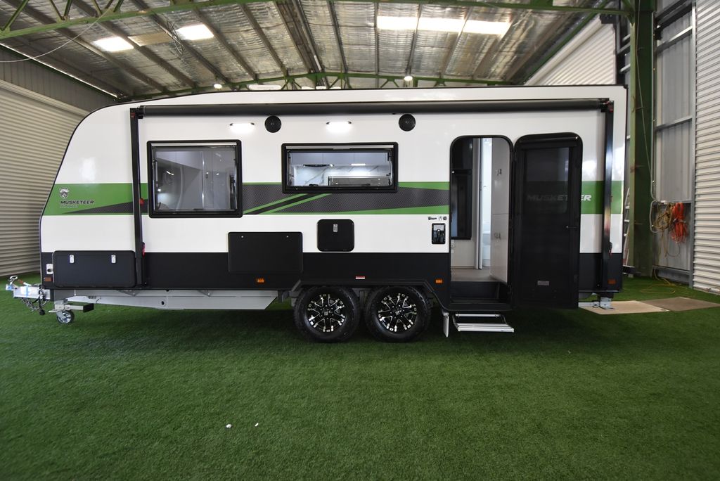 Musketeer Aramis is a popular rear door layout with rear ensuite and front bed. Offering the high 80 ceilings that Crusader is known for, the Musketeer Aramis is lightweight and easy to tow without compromising any of the standard Crusader features.